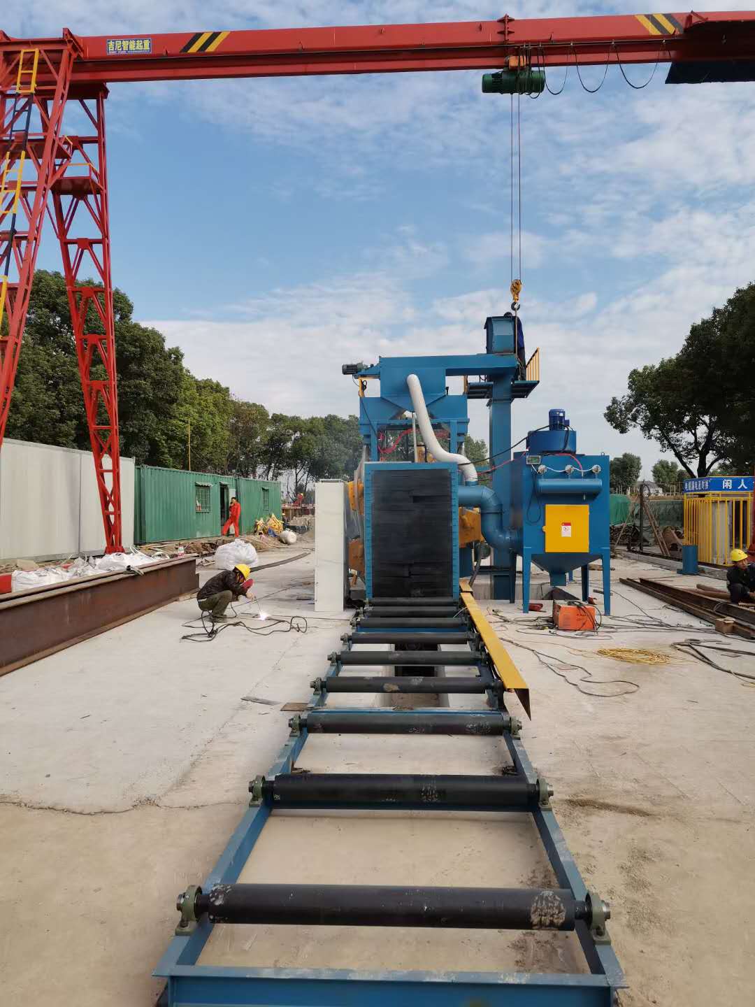 鋼結構輥道通過式拋丸機現場調試